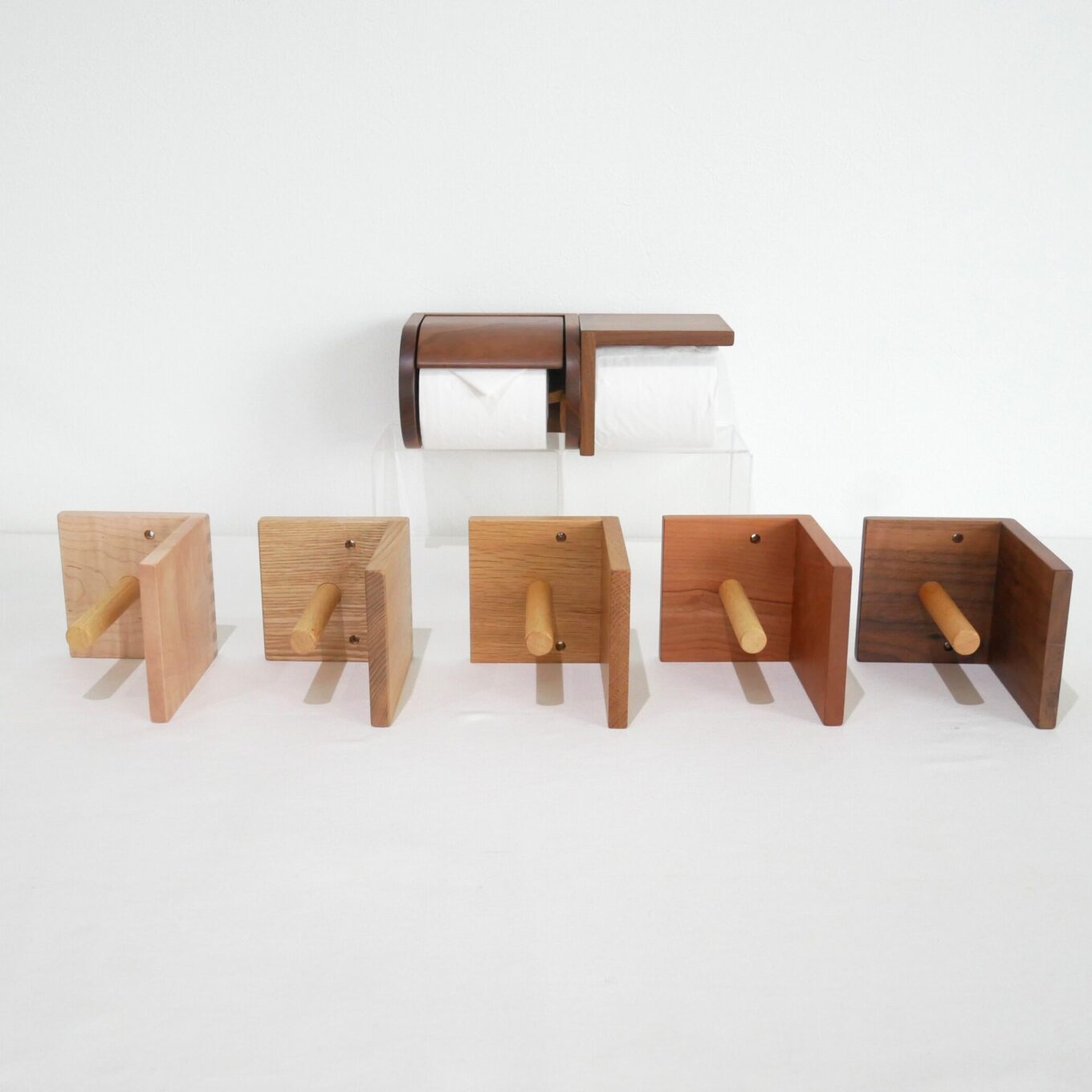 我が家でもこのホルダーを使っています。お手洗いは一人でも一日に何度も使う場所。家族全員となると、毎日何十回も目にし、手に触れることになります。使い始めた頃はセミマットの自然な仕上げでしたが、年月とともに色味が深まり、触れる部分には美しいツヤが生まれました。これも、無垢材ならではの楽しみ方ではないでしょうか。暮らしの中で少しずつ育っていく、そんな感覚を味わっていただけたら嬉しいです。